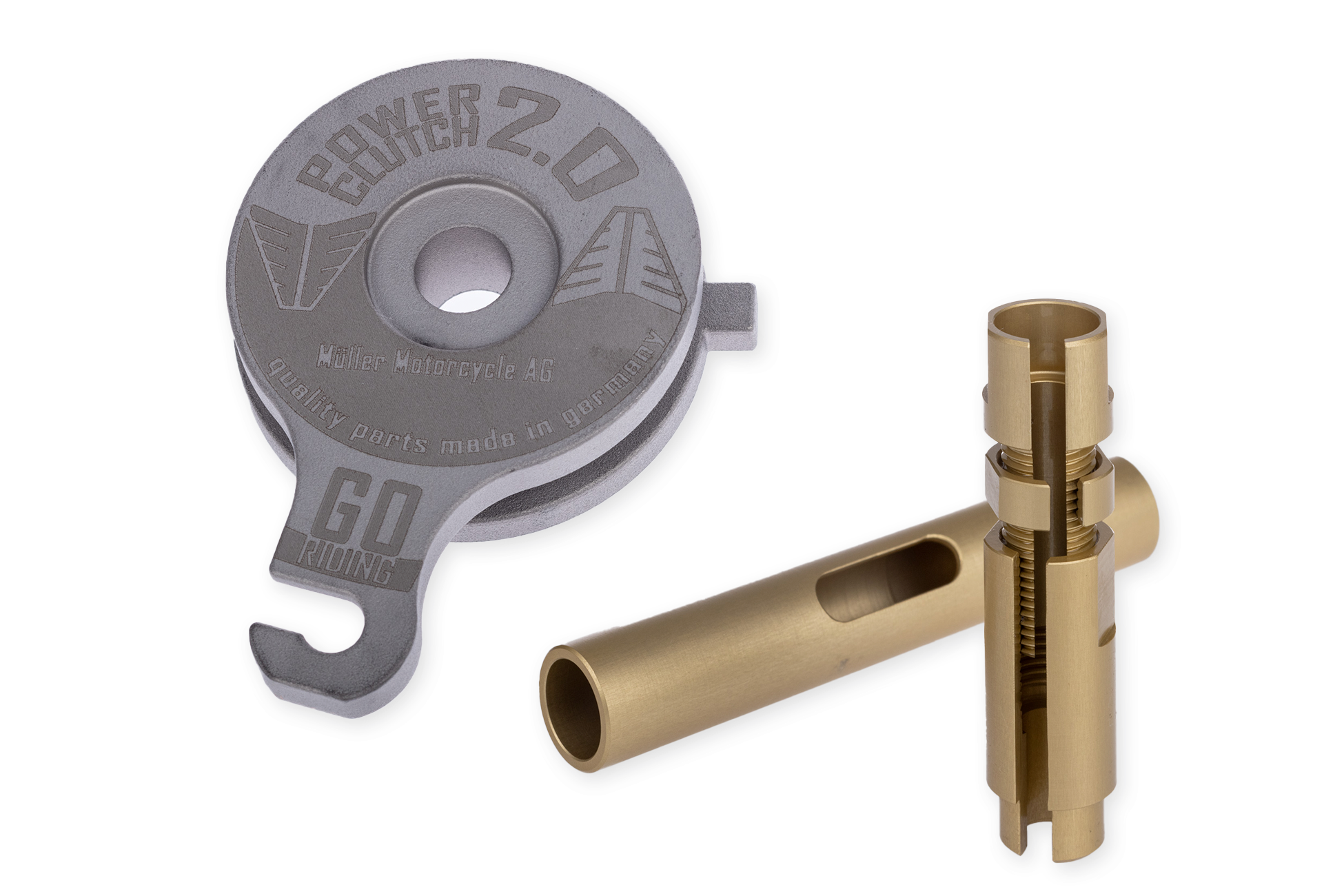 Neben dem Design haben wir die Geometrie der Kugeltaschen nochmals verbessert und dazu die „Müller Clutch Control“ entwickelt. Damit kann man die Kupplung noch leichter und präziser einstellen, als mit dem originalen Bowdenzugspanner. Die „Clutch Control“ ist mit allen M8 Bowdenzügen kompatibel und kann hier auch einzeln bestellt werden.